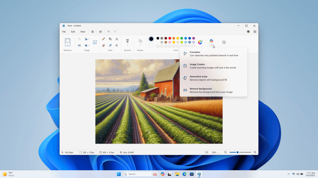 - Copilot Menu: A new drop-down menu in Paint gives quick access to powerful AI-driven tools.